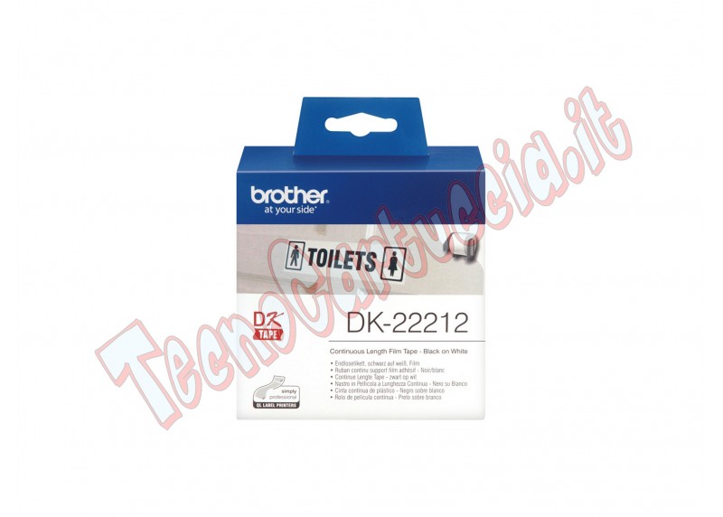 Home/Etichette>Brother>Brother - Nastro adesivo - in pellicola - Nero/Bianco - 62mm x 15,24mt - DK-22212