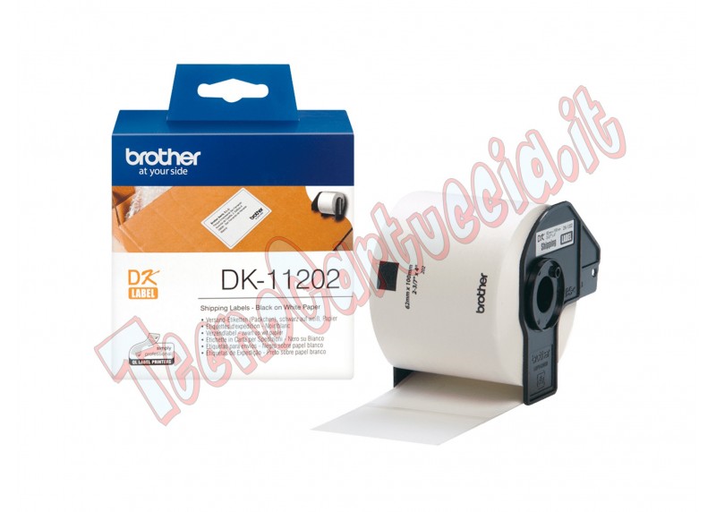 Home/Etichette>Brother>Brother - Rotolo 300 Etichette 62 x 100 mm - Nero/Bianco - DK-11202