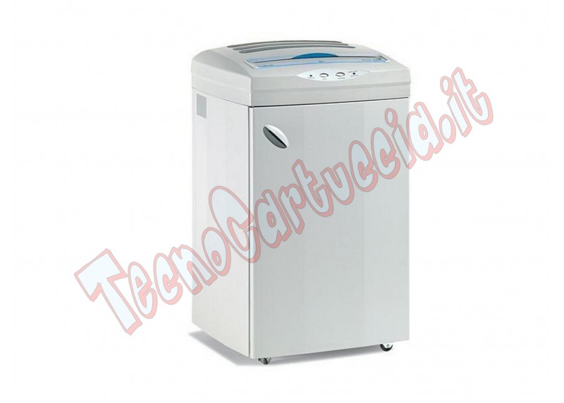 Equipaggiato con Sistema Energy Smart per zero consumi in modalità stand-by, Start&Stop automatici, sistema anti-inceppamento con ritorno automatico del materiale inserito in caso di intasamento (Auto-reverse); un sensore rileva l'apertura della porta e ferma automaticamente il gruppo di taglio (Safety stop). Capiente mobile in metallo da 200 litri montato su ruote girevoli.