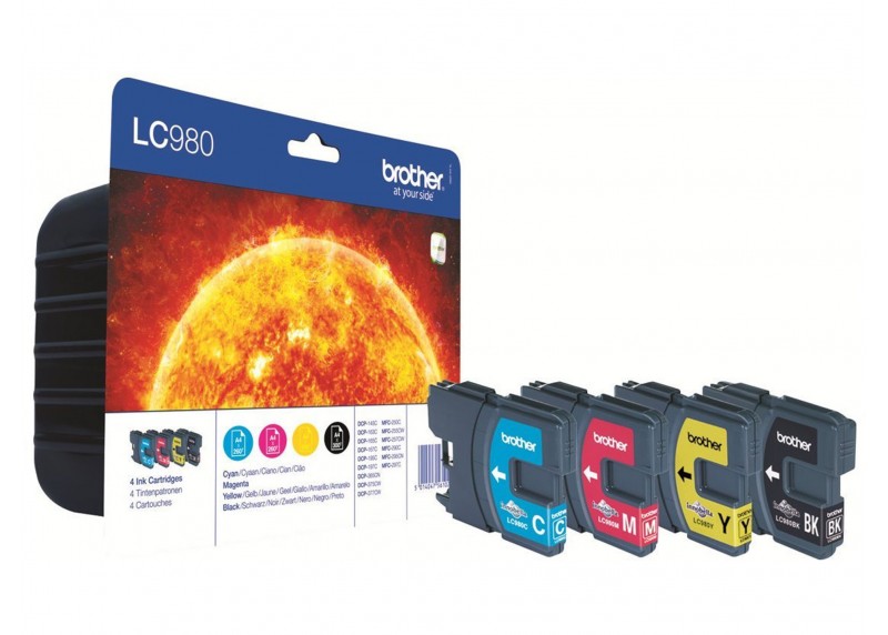 Kit 4 Cartucce Originali Brother LC980VALBPDR Nero, Ciano, Magenta e Giallo